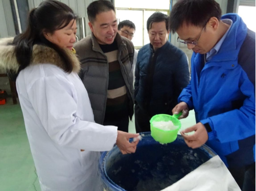 指导老师对实验品进行讨论分析