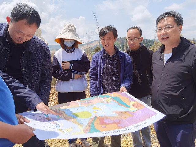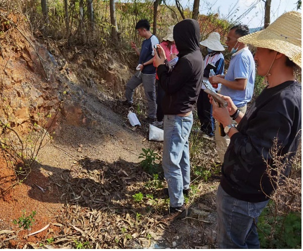 锂被誉为21世纪“白色石油”,成为世界各国争夺的对象,我国是锂资源消耗和进口大国,锂资源非常紧缺。近年来,温汉捷教授科研团队在国际上首次提出了“碳酸盐黏土型锂矿床”新类型的概念,颠覆了锂资源来源的传统观念,为我国锂资源开发利用开辟了新途径。为查明和开发碳酸盐黏土型锂资源,依托云南省重大科技专项计划“滇中新型锂资源成矿与增储”项目,2022年4月,温汉捷教授、张贵山教授、刘磊教授等10名师生,与昆明理工大学燕永峰教授、于文修教授等组成联合考察小组,赴滇中地区碳酸盐黏土型锂资源潜力区进行野外考察。