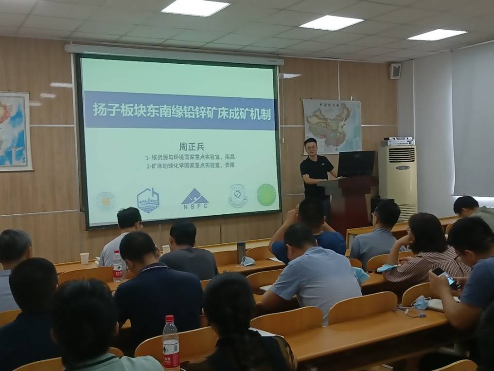 周正兵博士首先阐述区域地质背景,他指出三个层位赋存铅锌矿床,即清虚洞组、陡山沱组和板溪群清水江组-平略组;其次讲解矿床地质特征,有清虚洞组赋存的铅锌矿床、陡山沱组赋存的铅锌矿床、以及板溪群赋存的多金属脉型矿床;再者周正兵副研究员讲述了矿床地球的化学特征,他指出多金属脉型富集In、Fe、Co、Se等高温元素,陡山沱组赋存Ni、Sb等元素,清虚洞组赋存Ti、Cd,并进一步说明了其各个特点。