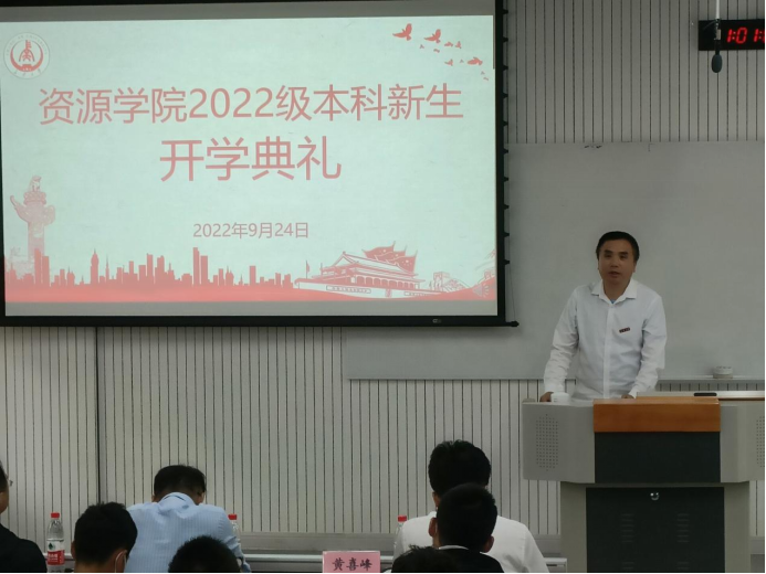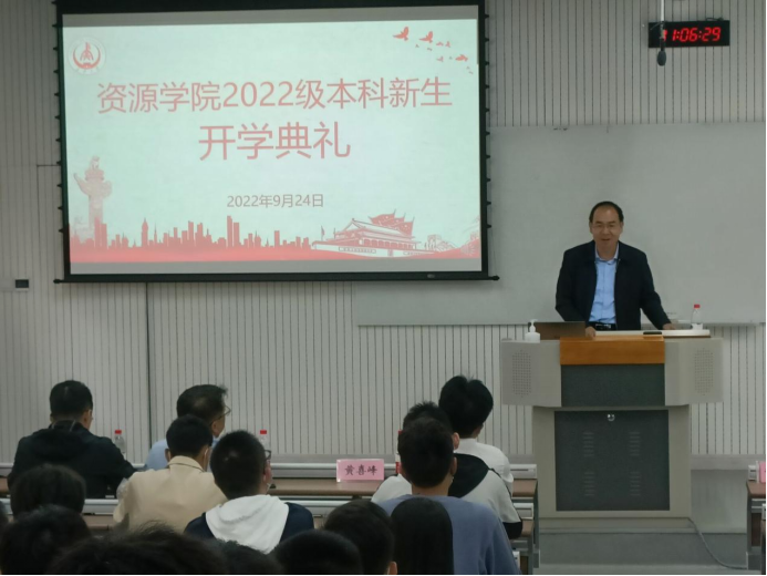 大会第三项,教师代表吴昌志教授发言。吴教授以自身经历与大家共勉,以地质科学研究条件的巨大变化说明现今地质探索的优势以及地质研究的广阔舞台。同时,他指出地球科学是一门系统科学,能帮助我们透过现象看本质,帮助我们塑造良好的世界观、价值观、人生观。他还希望同学们能不断体会大学学习乐趣,学会享受老员工活。他真诚希望全体同学抓住发展机遇,勇攀科研高峰,求真务实,为建设现代化强国贡献自己的专业力量。