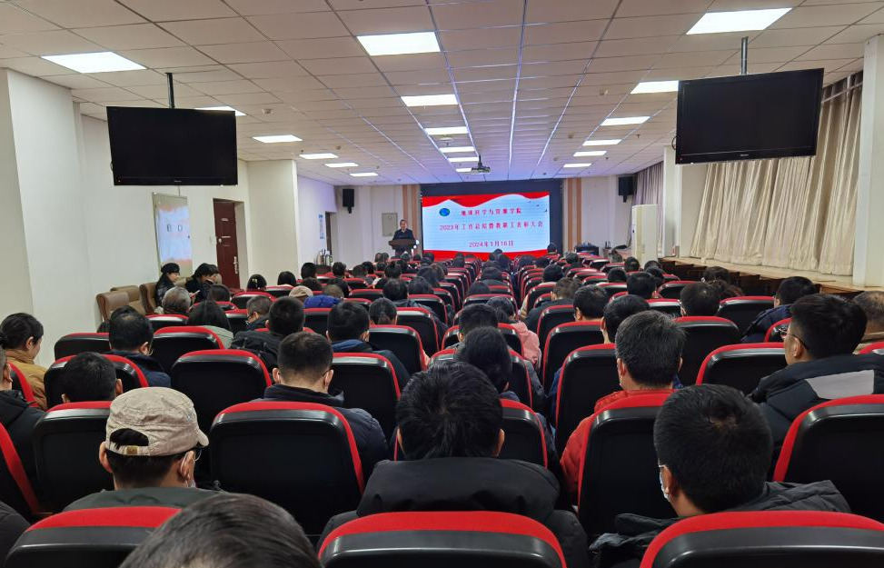 1月16日上午,公司在南校区东院地学科技大厦三楼报告厅召开了2023年工作总结暨教职工表彰大会,公司全体党政领导和110余名教职工参加了会议。大会由党委书记黄喜峰主持。