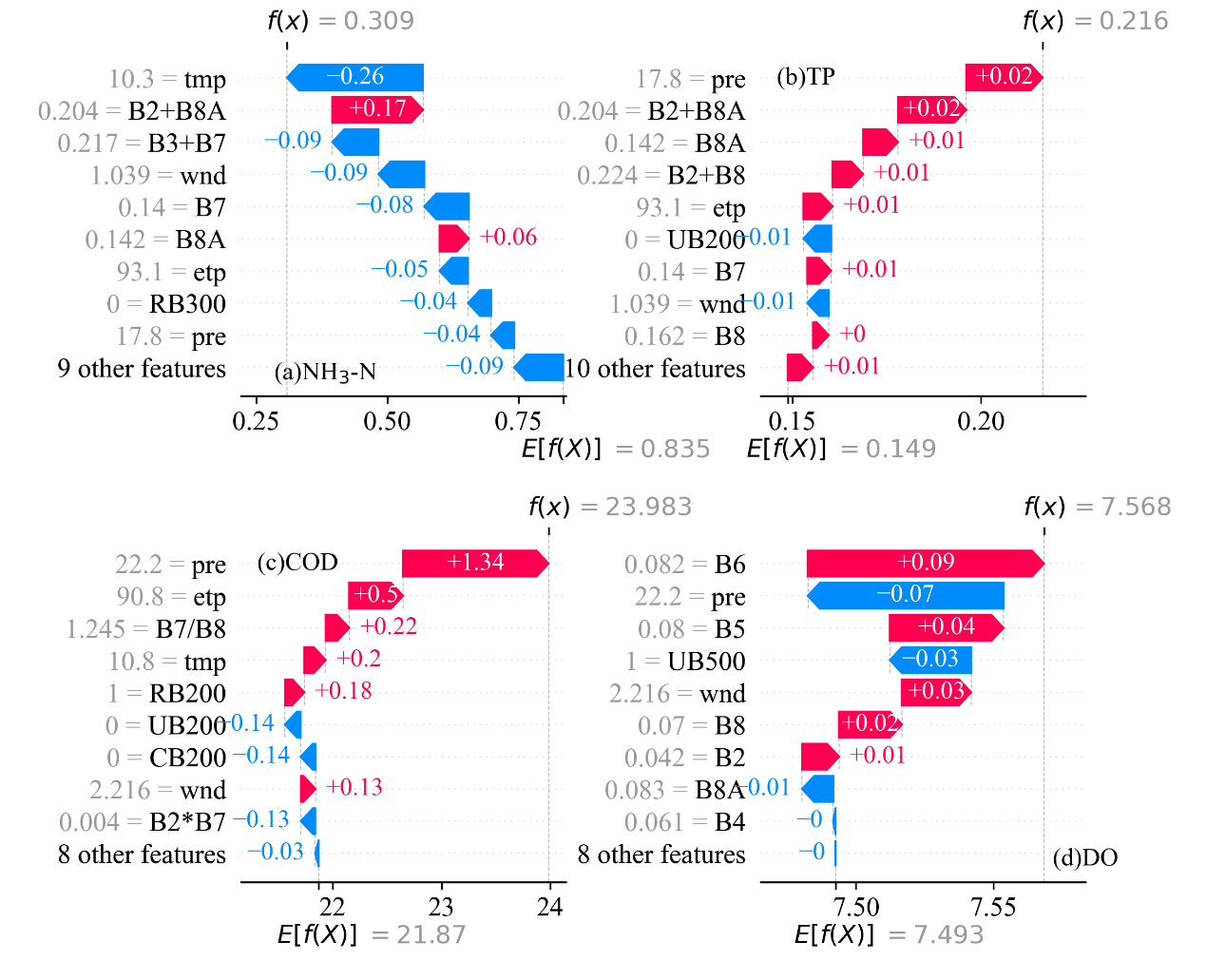图3. 四种水质参数的SHAP分析