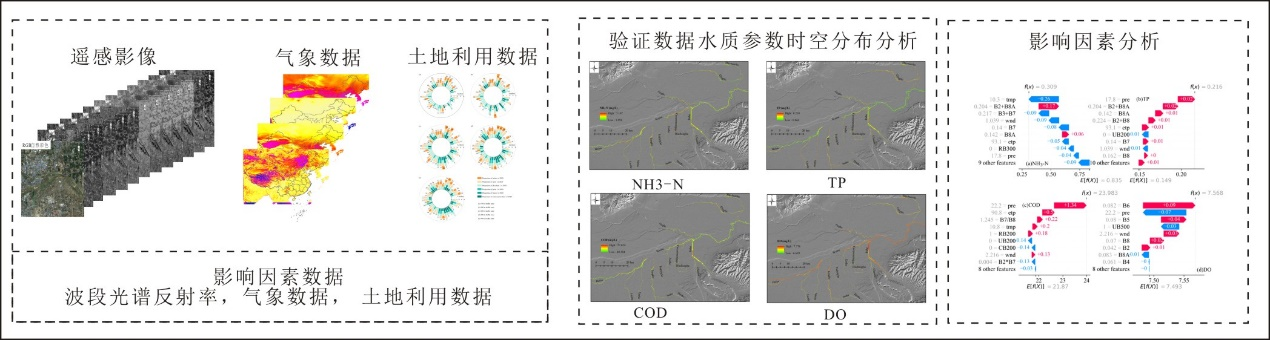 城市河流是重要的淡水资源,其水质状况直接联系到生态环境完整性和社会经济的可持续发展。伴随人口增长和工业化进程的加快,河流面临着日益严重的污染问题。因此,系统监测城市河流中的营养物质(如氮、磷)和有机污染物含量,对于增强生态完整性和促进社会和经济的可持续性至关重要。水质监测的传统手段是现场采样和实验室分析,尽管监测数据精度高,却受限于复杂地形和多变气候等因素。遥感水质监测技术应运而生,以其大尺度覆盖、周期性观测及全面监测的优势,成为传统监测方法的重要辅助工具。当前多数水质监测研究过度依赖遥感技术,忽视了多源数据融合的应用潜力。城市河流因其快速流动的特性和易受沿岸植被、农田、居民区及建设用地等多重因素影响的特质,使得仅凭遥感影像难以精准捕捉水质变化的细微动态。