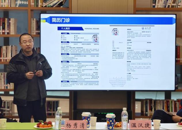 赵裕民主任为员工们详细解读了就业形势,并提供了深度求职指引。他建议同学们树立普通劳动者观念,秉持“先就业再择业”理念、跳出“幸存者偏差”、积累经验、提升职业胜任力。会上,他现场开通了“简历门诊”,针对如何有效突出个人优势、量化展示成果以及优化简历排版等问题,提出了具体且切实可行的指导建议。