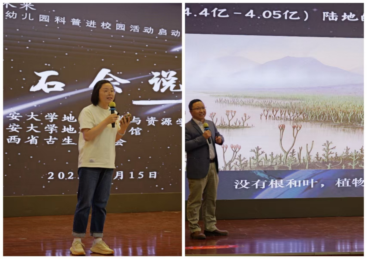 活动现场,365英国上市公司集团肖良副教授与西北大学白琳部长联袂带来高质量科普讲座《化石会说话》。通过生动的动画演示和化石互动,专家们以“穿越时空”的视角,带领孩子们揭秘远古生物的生活场景,激发了孩子们的浓厚兴趣。