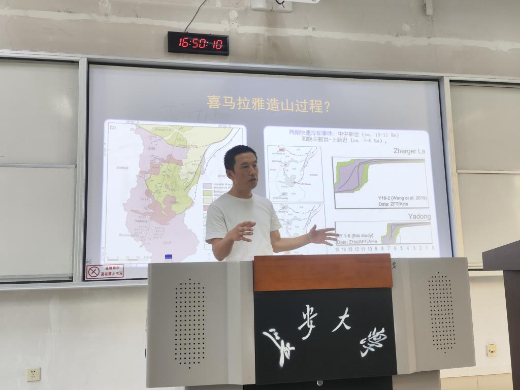 董汉文老师以“读懂地质”为题,围绕“什么是地质学、去哪里找石头、地球的秘密”三部分内容为大家做了一场生动的科普报告。在报告中,董老师展示了许多野外科考图片,介绍了许多地学研究内容,带领大家领略了地学魅力。他号召大家坚定专业自信、努力学习。