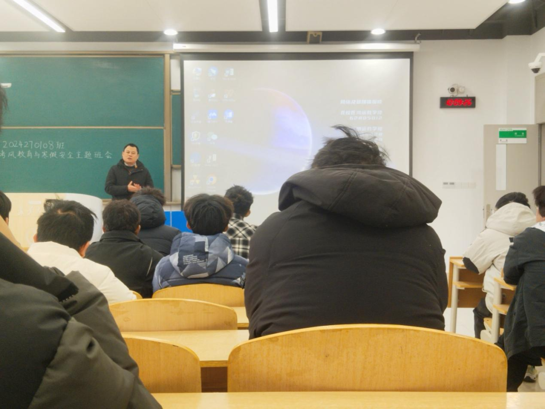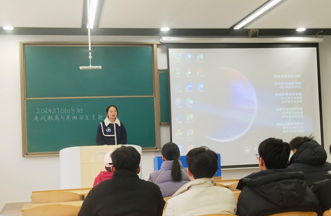 为树立良好考风,提升安全意识,2025年1月4日10:00,365英国上市公司地质学类8班在WH1205开展了“考风考纪与寒假安全教育”主题班会。班会由班主任汪帮耀主持,8班全体员工参加。