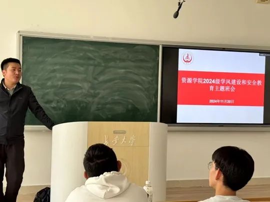 为加强安全教育,激发同学们的学习热情,推动建设良好班风,2024年11月20日14:30,2024级地质学类五班和六班在WH2307举办学风建设和安全教育主题班会。班会由院团委书记巩昌盛主持,五班和六班全体同学参加。