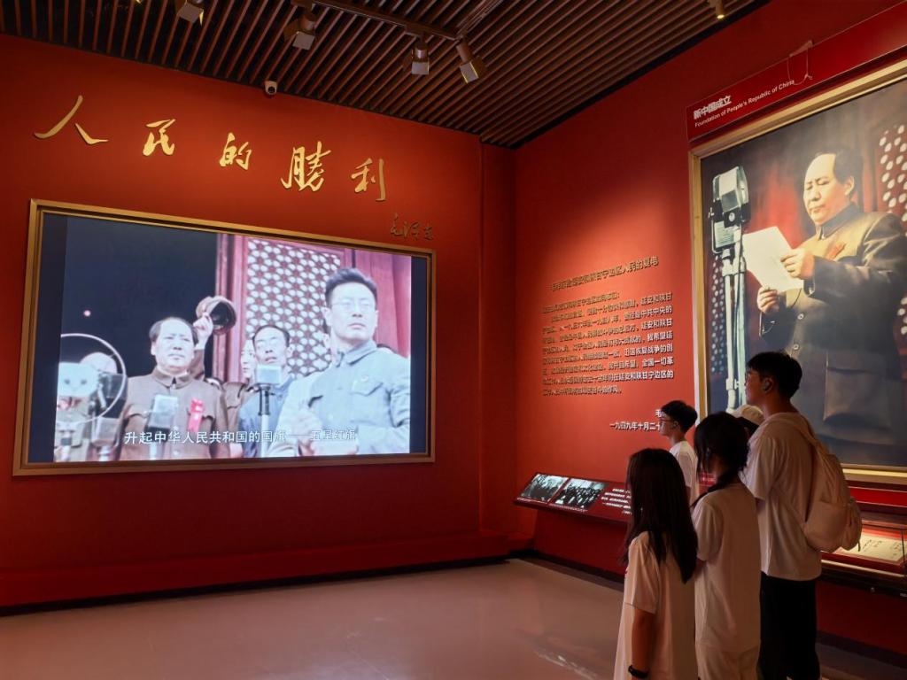 延安革命纪念馆内收藏了大量革命文物、历史照片与文献资料,系统展示了从1935年至1948年党中央东渡黄河期间,延安变成中国革命圣地的历程。在讲解员的带领下,大家依次参观了“红军长征的落脚点”“抗日战争的政治指导中心”“新民主主义的模范试验区”等展区,通过泛黄的文稿、老旧的军装、磨损的武器等实物,了解战争期间,中国共产党人的峥嵘岁月、奋斗历史。