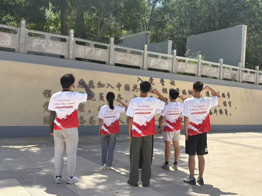 默哀仪式后,大家一同参观了民和县红色教育基地,实践队员共同学习了当地党群文化:民和县作为双拥模范县,拥有深厚的军民双拥历史,双树村作为青海省第一个农村党支部的诞生地,见证了革命早期党组织在当地的发展与壮大,展现了党与人民群众紧密相连的鱼水深情。陵园内的史料,也详细记录了民和地区的抗震救灾事迹:从早年投身革命的热血青年,到在艰苦斗争中坚守信仰的仁人志士,他们用生命谱写了壮丽的篇章,让实践队员们深刻体会到这片土地上不屈的精神和顽强的意志。